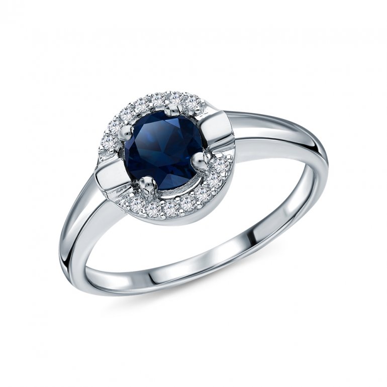 Серебряное кольцо с фианитами и сапфиром природным S42732-K9W-01 Кольца SUNLIGHT | V4.Ru: Маркетплейс