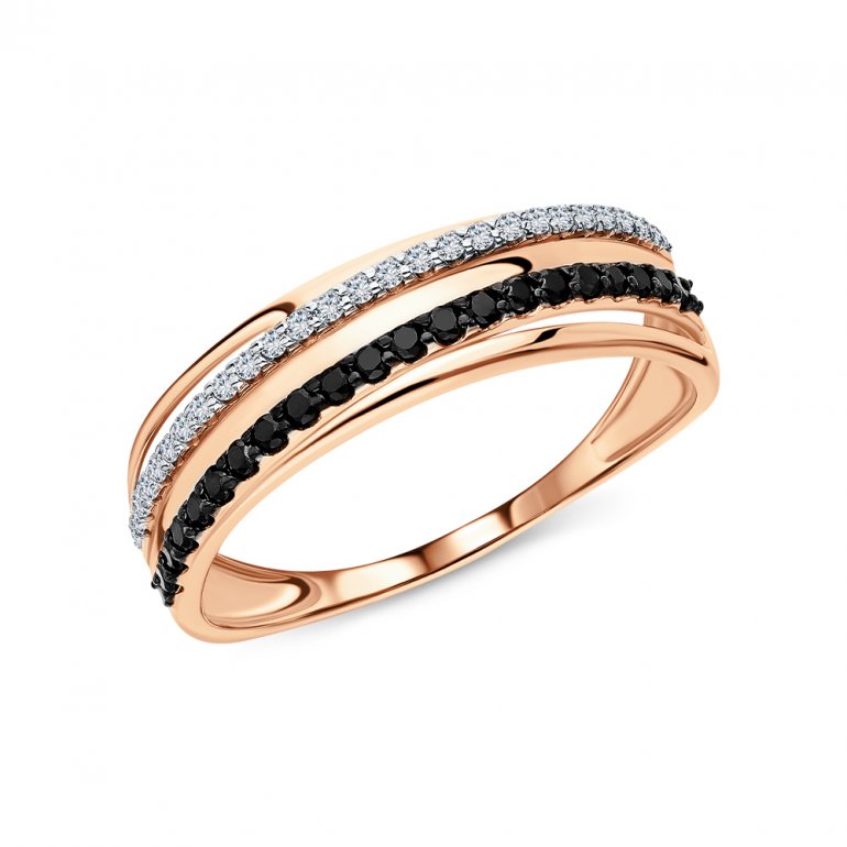 Кольцо с 20 бриллиантами черными облагороженными, 0.17 карат, огранка круг 57 граней, цвет 7, чистота 6, тип огранки А; 25 бриллиантами, 0.102 карат, огранка круг 17 граней, цвет 2, чистота 2, тип огранки А; Розовое золото 585 пробы.
