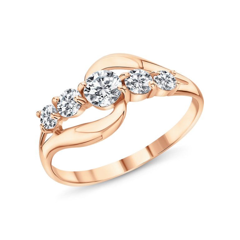 Кольцо, вставка: фианитом бесцветным; Розовое золото 585 пробы.