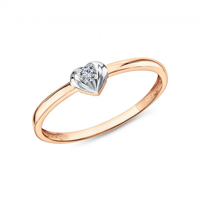 Кольцо с 1 бриллиантом, 0.041 карат, огранка круг 57 граней, цвет 3, чистота 6, тип огранки А; Розовое золото 585 пробы.