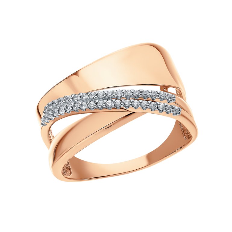 Кольцо, вставка: фианит бесцветный; Розовое золото 585 пробы.