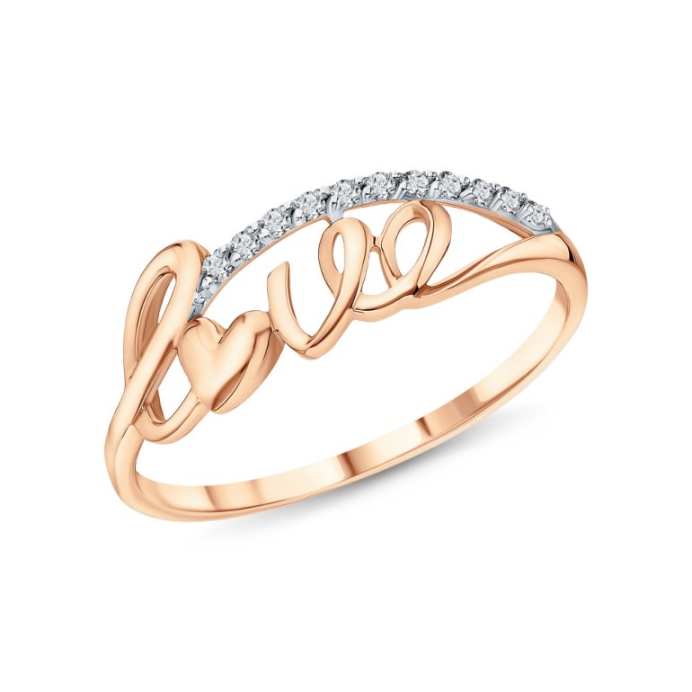 Кольцо, вставка: фианитом бесцветным; Розовое золото 585 пробы.