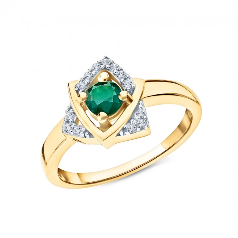 Кольцо с 1 изумрудом природным, 0.23 карат, цвет 4, чистота 3, тип огранки В; фианитом бесцветным; Серебро 925 пробы.