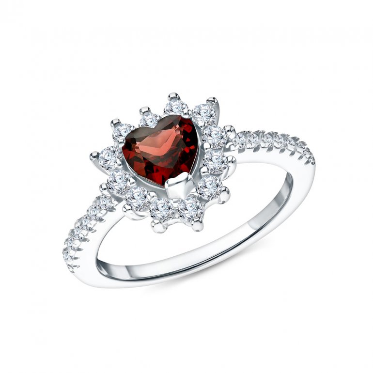 Серебряное кольцо с фианитами и гранатами природными S42670-K9W-03 Кольца SUNLIGHT | V4.Ru: Маркетплейс