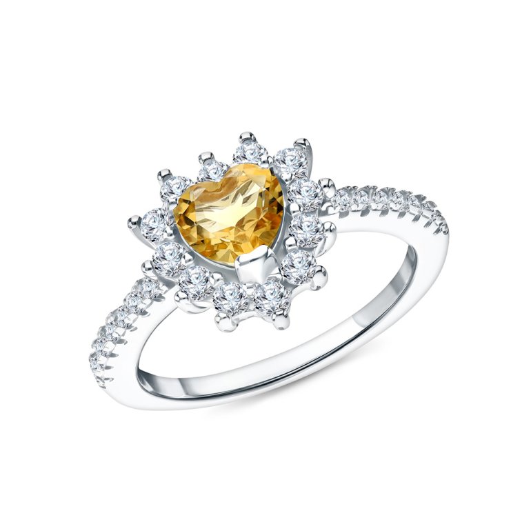 Кольцо, вставка: цитрин природный;  фианитом бесцветным; Серебро 925 пробы.