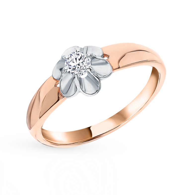 Кольцо, вставка: фианит; Розовое золото 585 пробы.