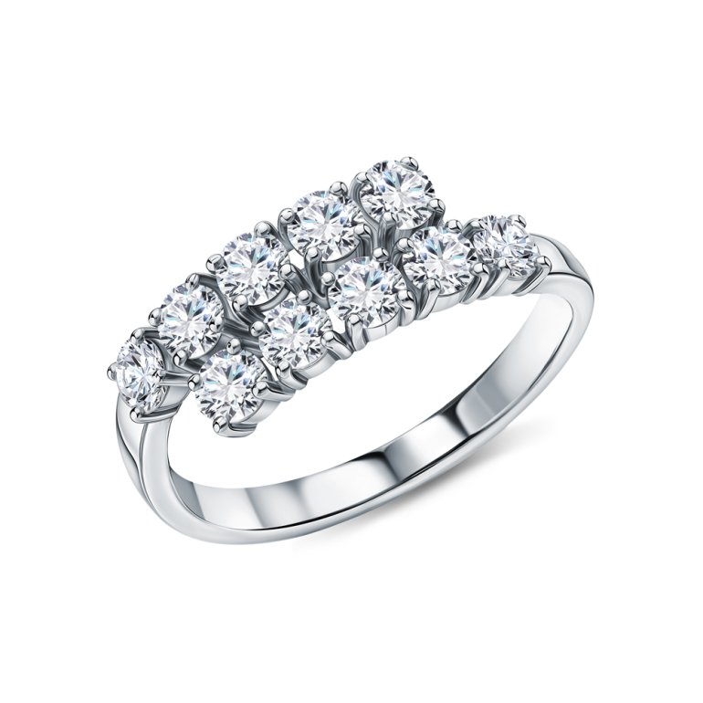 Кольцо с 10 бриллиантами выращенными, 0.945 карат, огранка круг 57 граней, цвет 2, чистота 4, тип огранки А; Белое золото 585 пробы.