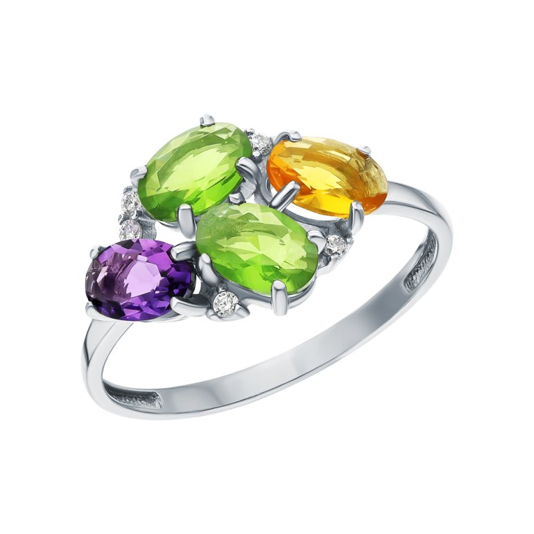 Кольцо с 1 аметистом природным, 0.395 карат, тип огранки Б; ювелирный кристалл; фианит; Серебро 925 пробы.