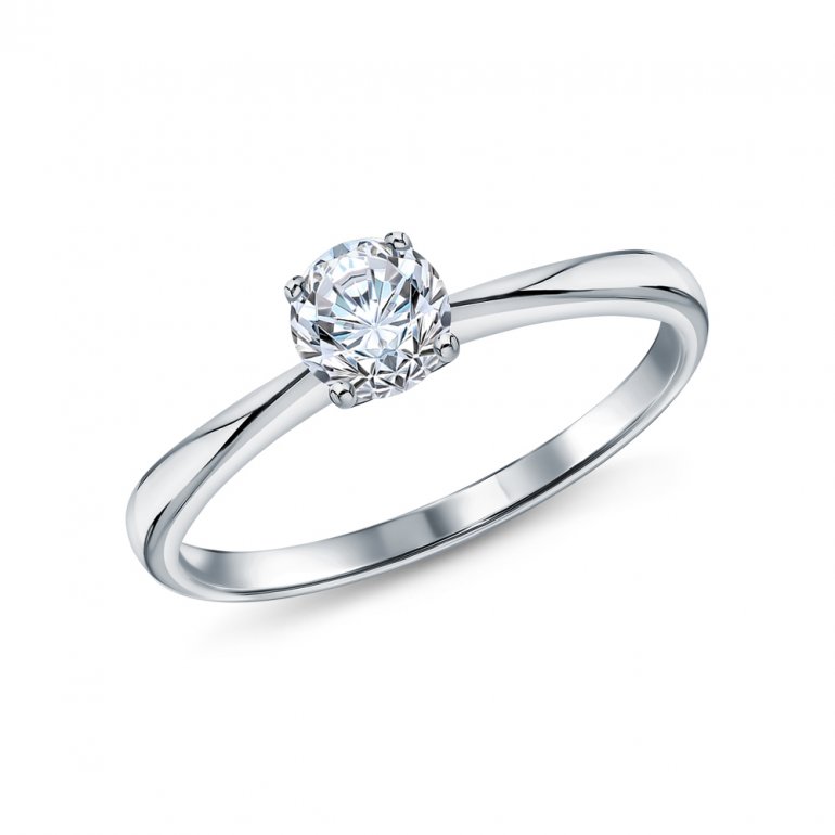 Кольцо с 1 бриллиантом, 0.404 карат, огранка круг 57 граней, цвет 4, чистота 6, тип огранки А; Белое золото 585 пробы.