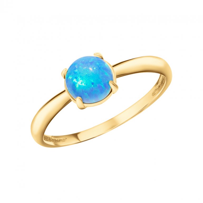 Кольцо с 1 опалом синим синтетическим, 0.62 карат, тип огранки Б; Желтое золото 585 пробы.