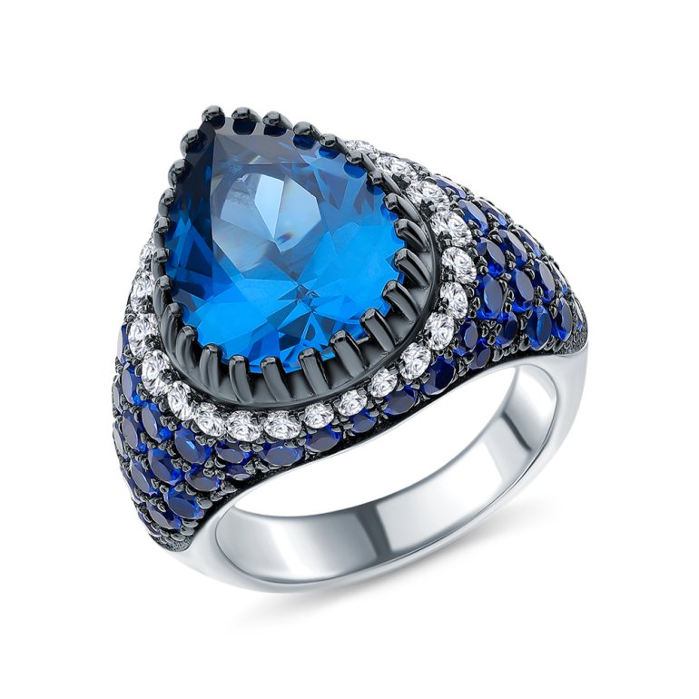 Кольцо, вставка: фианитом бесцветным;  шпинель синяя синтетическая; Серебро 925 пробы.