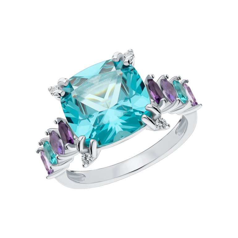 Серебряное кольцо с фианитами, корундом синтетическим, аметистами природными и наноситаллами, параибой синтетической 01-3120/НСПР-00 Кольца SUNLIGHT | V4.Ru: Маркетплейс