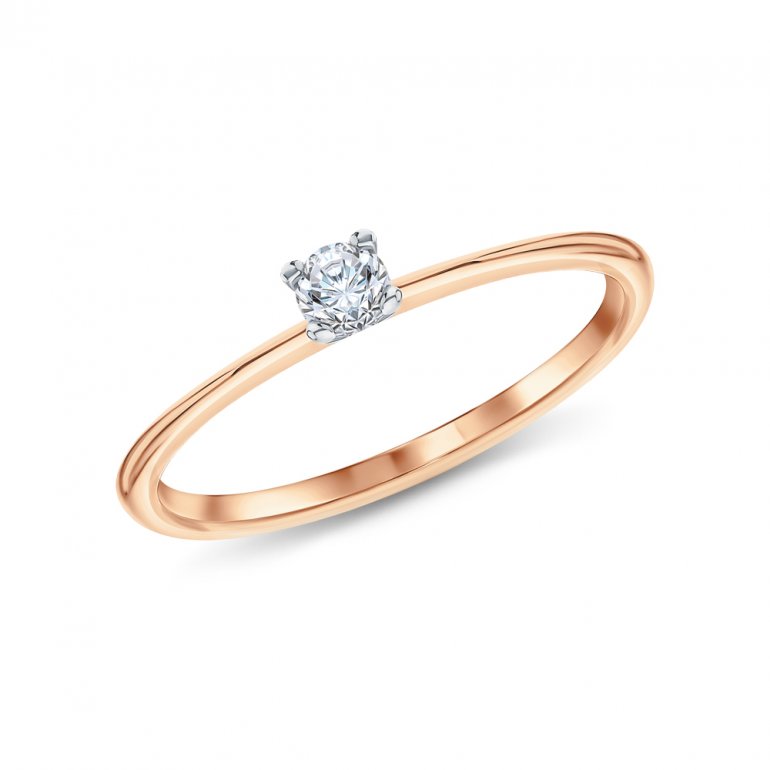 Кольцо с 1 бриллиантом, 0.071 карат, огранка круг 57 граней, цвет 3, чистота 5, тип огранки А; Розовое золото 585 пробы.