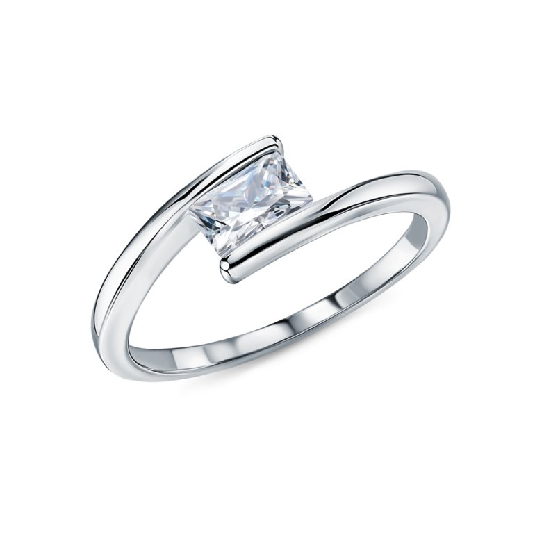 Кольцо, вставка: фианитом бесцветным; Серебро 925 пробы.