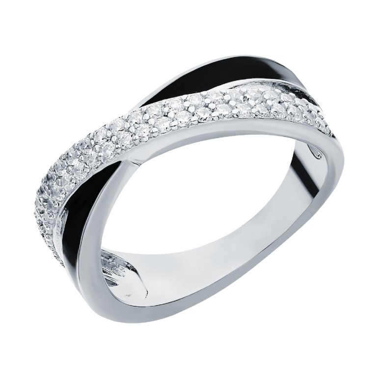 Серебряное кольцо с эмалью и фианитами S30304-K9W-01 Кольца SUNLIGHT | V4.Ru: Маркетплейс