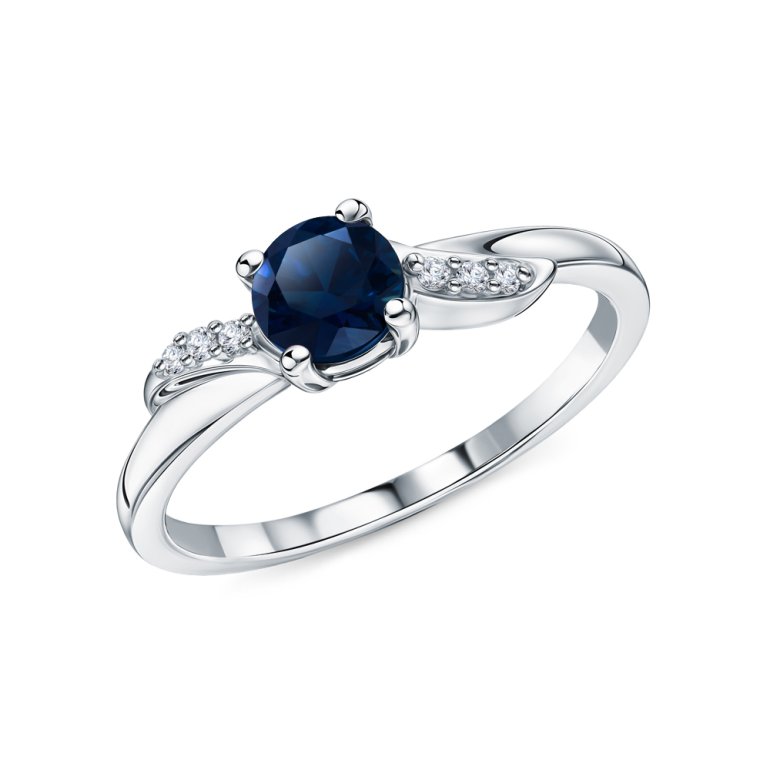Серебряное кольцо с фианитами и сапфирами природными S43305-K9W-02 Кольца SUNLIGHT | V4.Ru: Маркетплейс