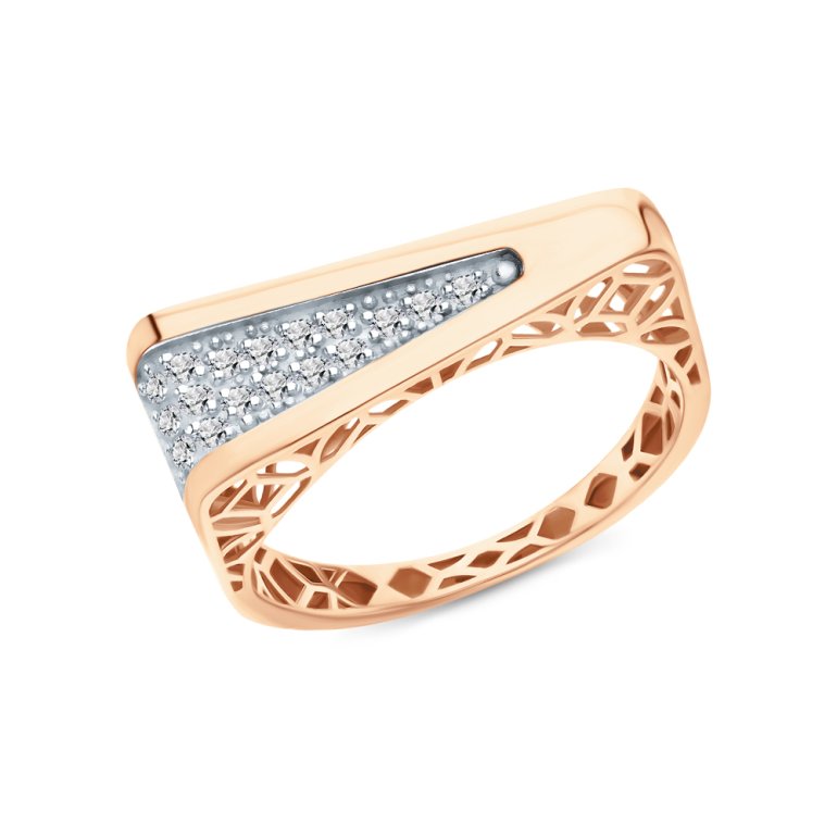 Кольцо, вставка: фианитом бесцветным; Розовое золото 585 пробы.