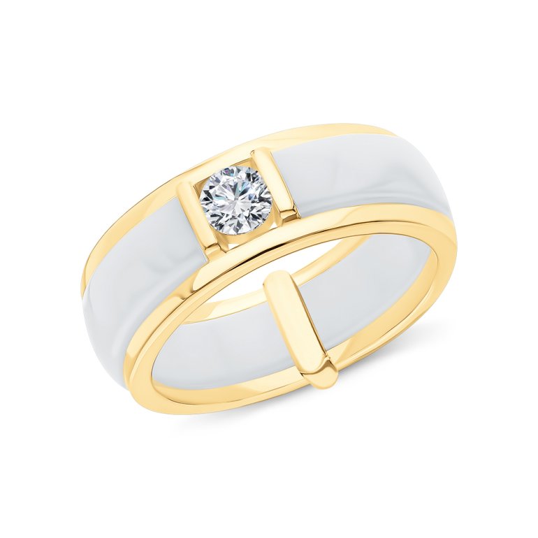Кольцо, вставка: фианитом бесцветным;  керамика белая; Серебро 925 пробы.