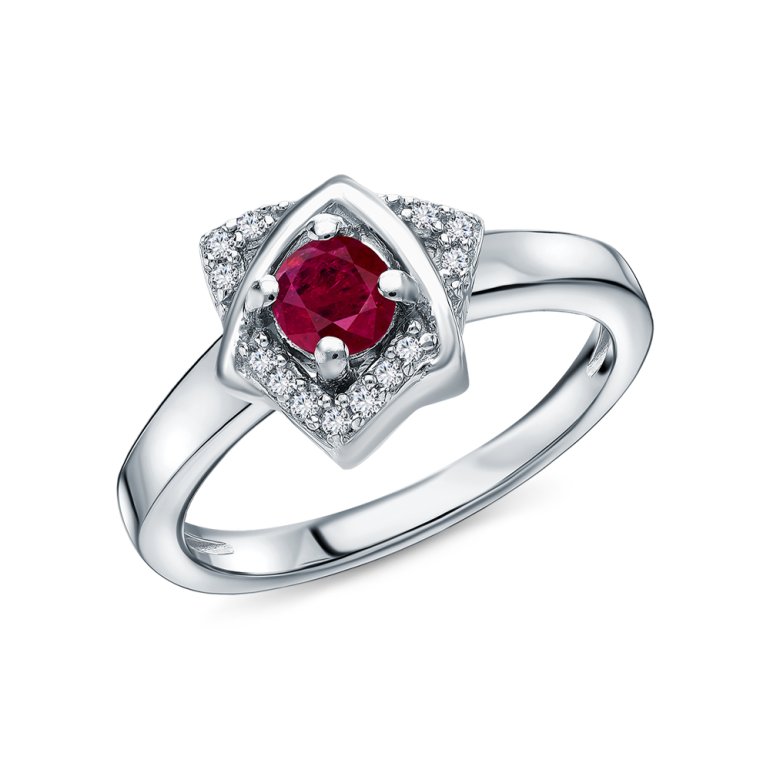 Серебряное кольцо с фианитами и рубином природным S42736-K9W-01 Кольца SUNLIGHT | V4.Ru: Маркетплейс