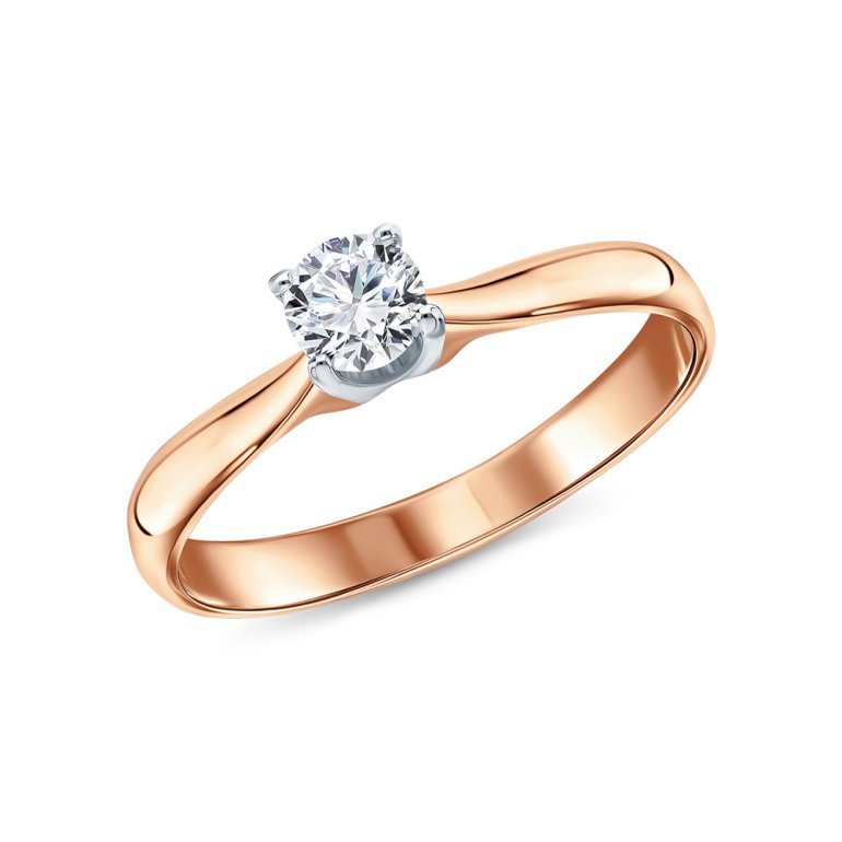Кольцо с 1 бриллиантом, 0.167 карат, огранка круг 57 граней, цвет 4, чистота 6, тип огранки А; Розовое золото 585 пробы.