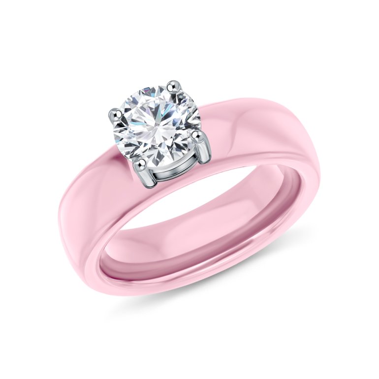 Кольцо, вставка: фианитом бесцветным;  керамика розовая;  Сталь;