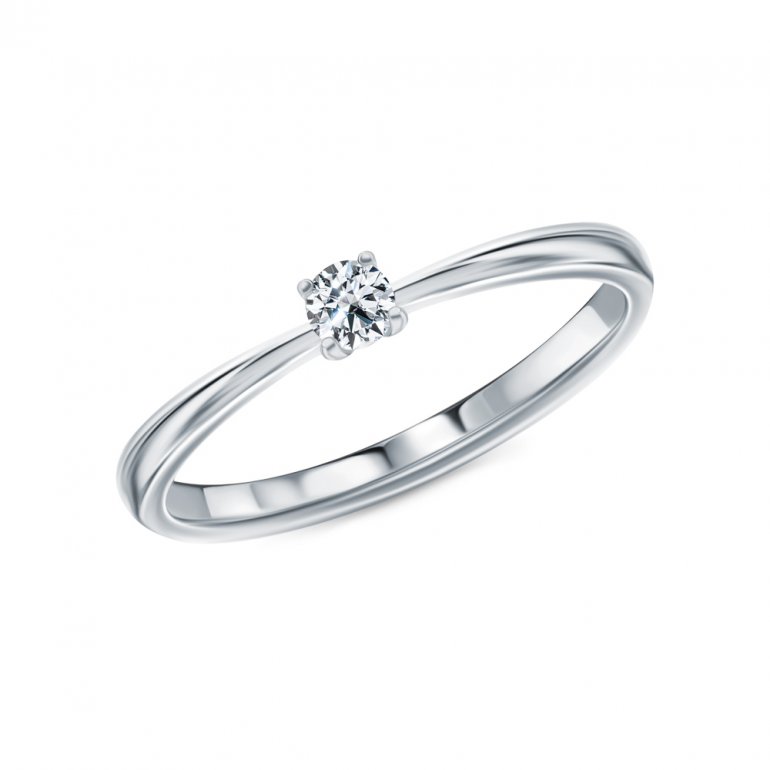 Кольцо с 1 бриллиантом, 0.105 карат, огранка круг 57 граней, цвет 3, чистота 6, тип огранки А; Платина 950 пробы.