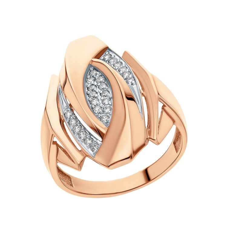 Кольцо, вставка: фианитом бесцветным; Розовое золото 585 пробы.