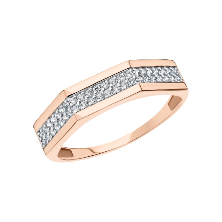 Кольцо, вставка: фианитом бесцветным; Розовое золото 585 пробы.