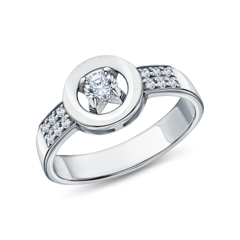 Кольцо, вставка: муассанит;  фианитом бесцветным; Серебро 925 пробы.