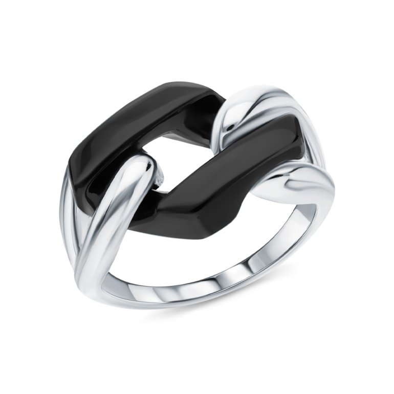 Кольцо, вставка: керамика черная; Серебро 925 пробы.