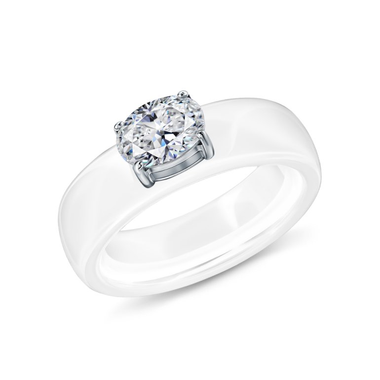 Кольцо, вставка: фианитом бесцветным;  керамика белая;  Сталь;