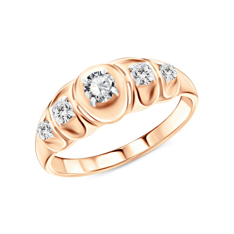 Кольцо, вставка: фианит бесцветный; Розовое золото 585 пробы.