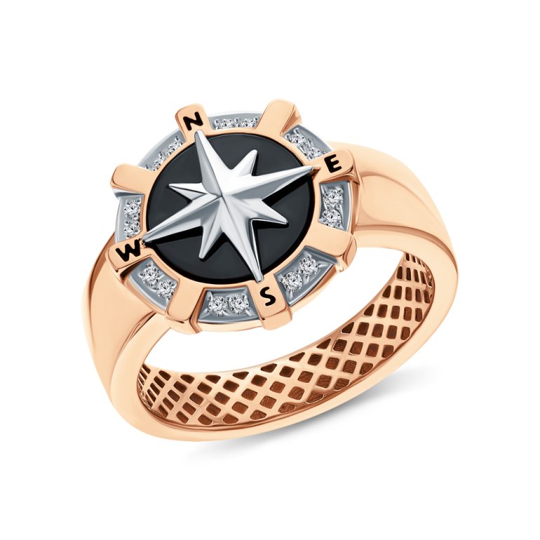 Золотое кольцо с фианитами и ониксом природным 040005* Кольца SUNLIGHT | V4.Ru: Маркетплейс