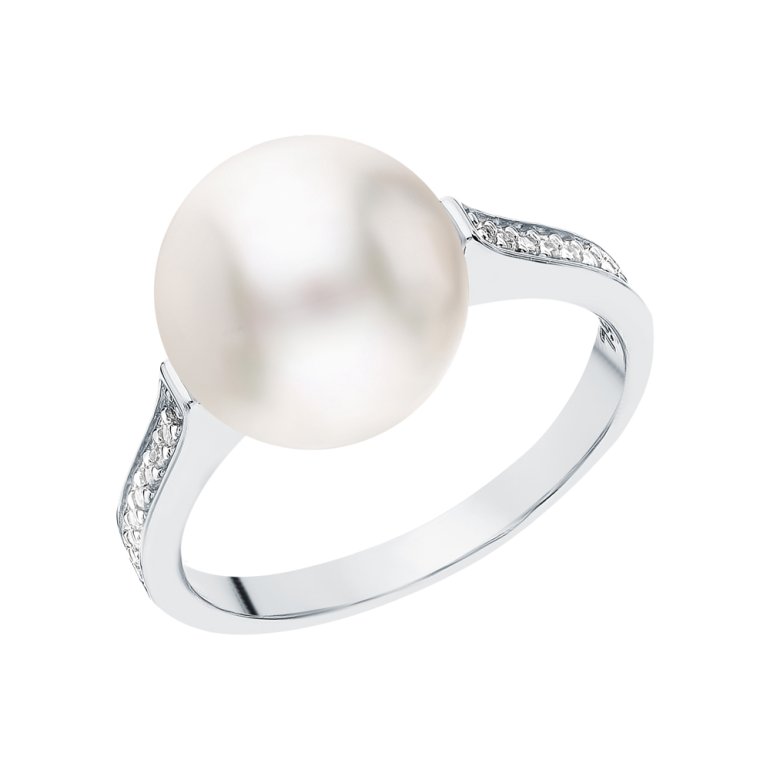 Серебряное кольцо с жемчугом природным и фианитами S91487-K9W-02 Кольца SUNLIGHT | V4.Ru: Маркетплейс