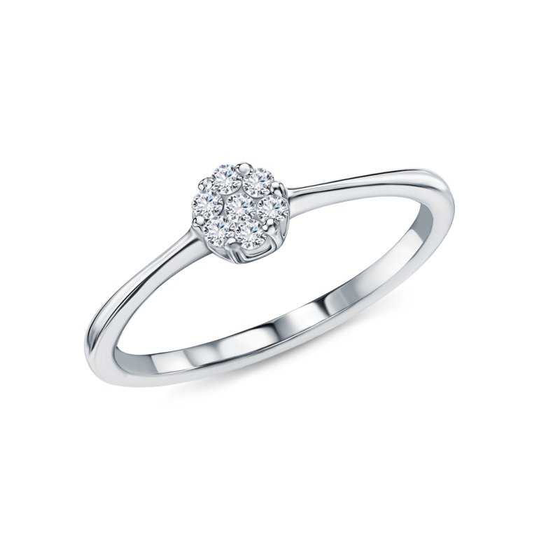 Кольцо с 1 бриллиантом выращенным, 0.023 карат, огранка круг 57 граней, цвет 2, чистота 5, тип огранки А; 6 бриллиантами выращенными, 0.09 карат, огранка круг 57 граней, цвет 2, чистота 5, тип огранки А; Серебро 925 пробы.