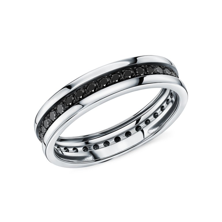 Кольцо с 33 бриллиантами черными облагороженными, 0.527 карат, огранка круг 57 граней, цвет 7, чистота 6, тип огранки А; Белое золото 585 пробы.