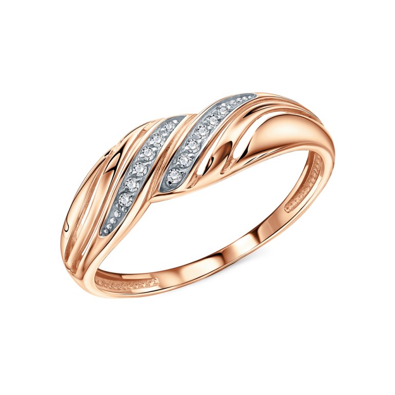 Кольцо, вставка: фианитом бесцветным; Розовое золото 585 пробы.