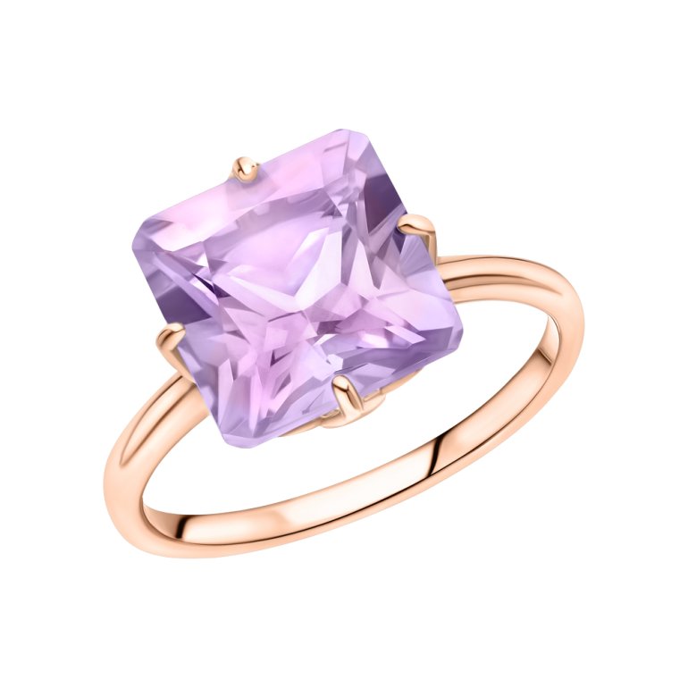 Кольцо с 1 аметистом природным, 4.375 карат, тип огранки Б; Розовое золото 585 пробы.
