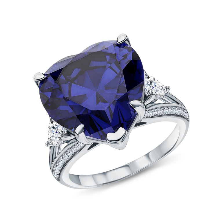 Кольцо, вставка: фианитом бесцветным;  фианит фиолетовый; Серебро 925 пробы.
