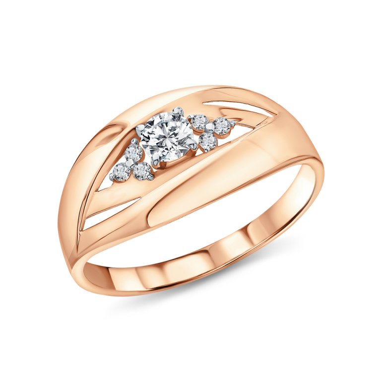 Кольцо, вставка: фианит бесцветный; Розовое золото 585 пробы.