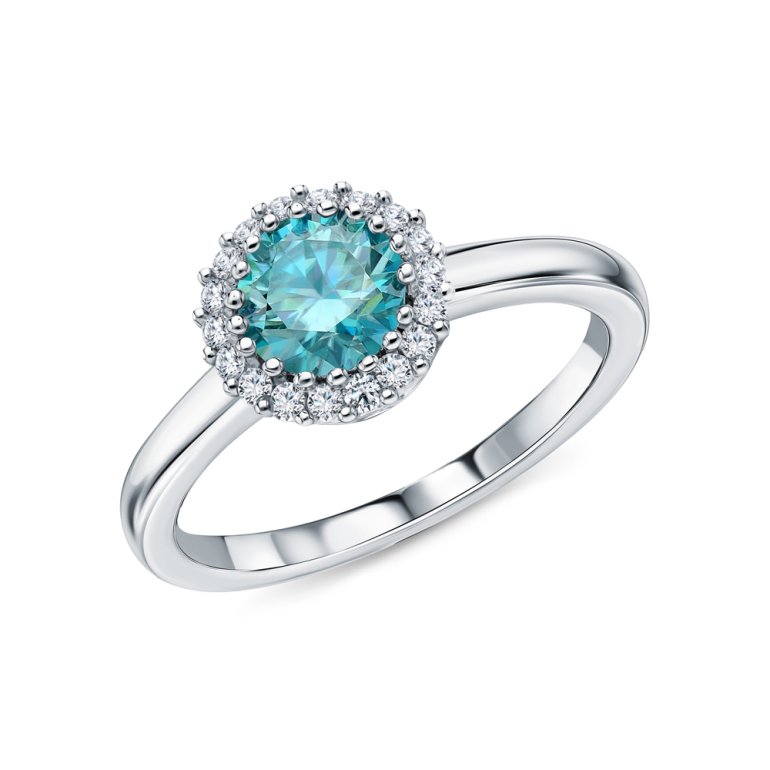 Кольцо с 1 муассанитом параиба, 0.761 карат;  фианитом бесцветным; Серебро 925 пробы.