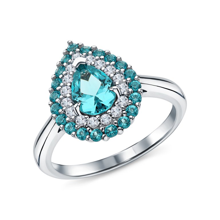 Кольцо, вставка: фианитом бесцветным;  алпанит бирюзовый; Серебро 925 пробы.