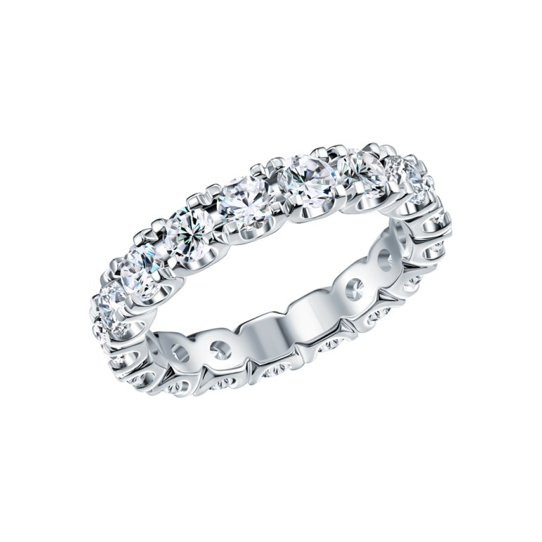Кольцо с 2 бриллиантами, 0.36 карат, огранка круг 57 граней, цвет 3, чистота 6, тип огранки А; 14 бриллиантами, 2.193 карат, огранка круг 57 граней, цвет 3, чистота 6, тип огранки А; Белое золото 585 пробы.