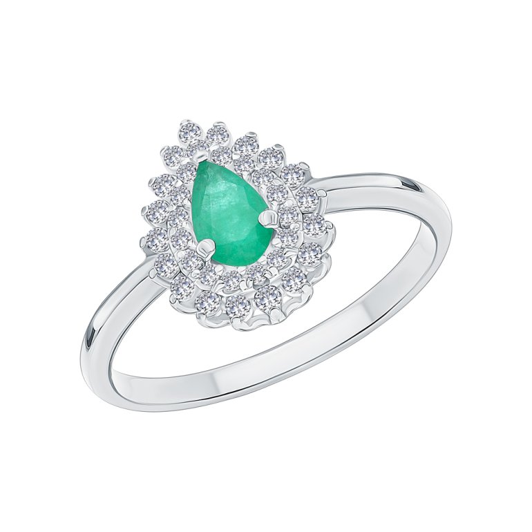 Кольцо с 1 изумрудом природным, 0.331 карат, цвет 3, чистота 3, тип огранки Б; фианитом бесцветным; Серебро 925 пробы.