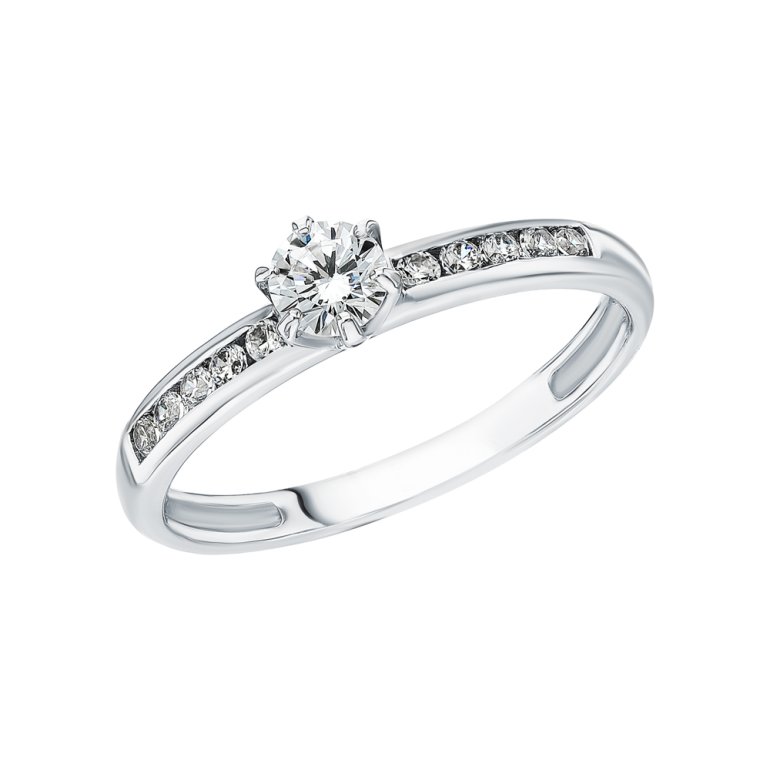Кольцо, вставка: фианит; Белое золото 585 пробы.