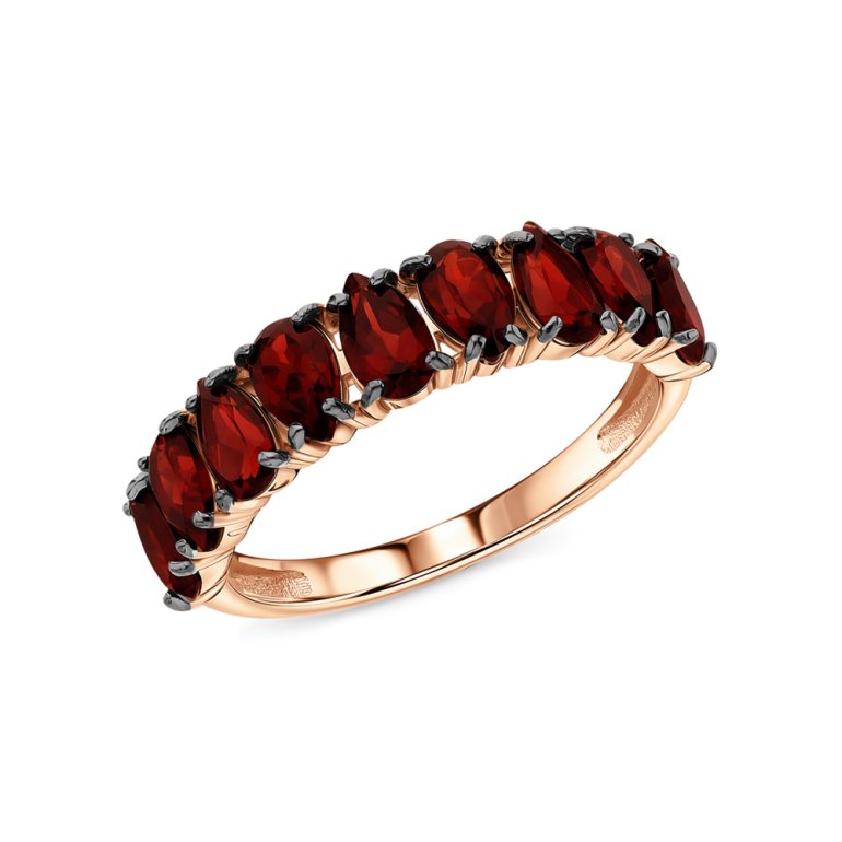 Кольцо с 9 гранатами природными, 2.45 карат, тип огранки Б; Розовое золото 585 пробы.