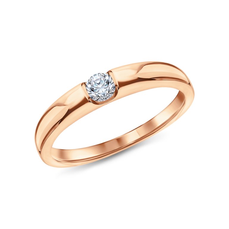Кольцо с 1 бриллиантом, 0.138 карат, огранка круг 57 граней, цвет 3, чистота 6, тип огранки А; Розовое золото 585 пробы.