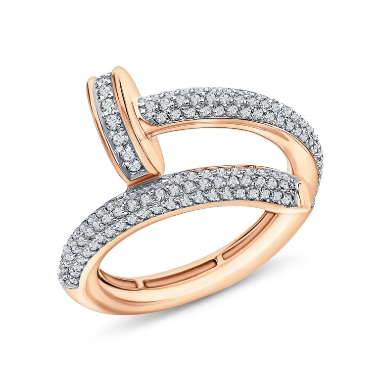 Кольцо, вставка: фианитом бесцветным;  фианитом бесцветным; Розовое золото 585 пробы.