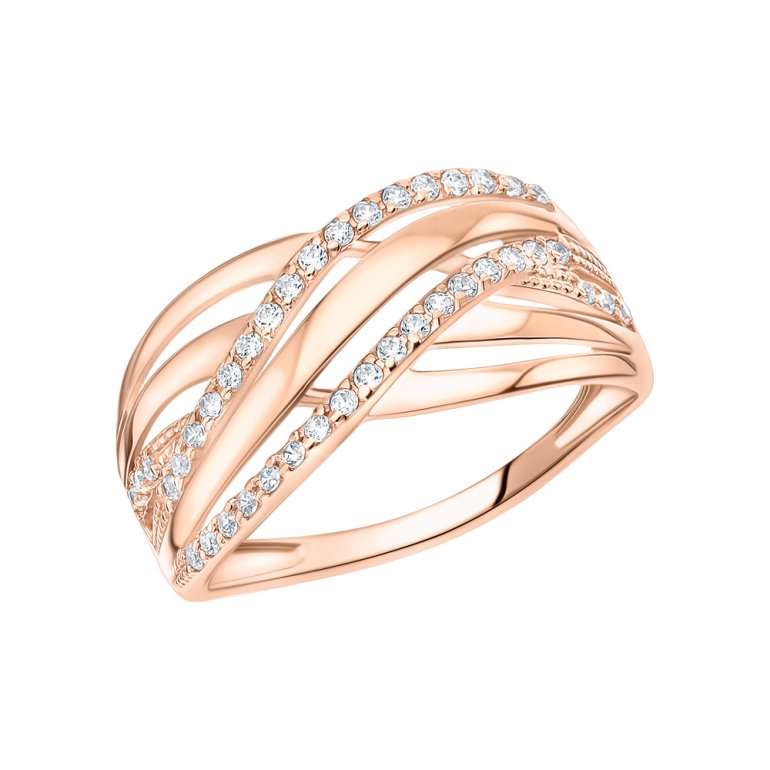 Кольцо, вставка: фианит; Розовое золото 375 пробы.