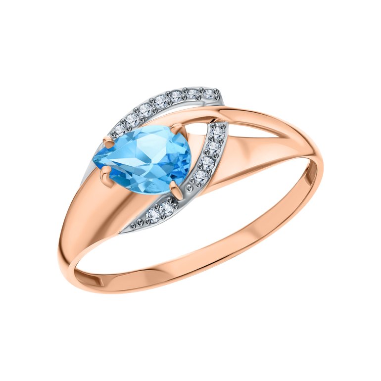 Кольцо с 1 топазом свисс, 0.75 карат, тип огранки Б; фианитом бесцветным; Розовое золото 585 пробы.
